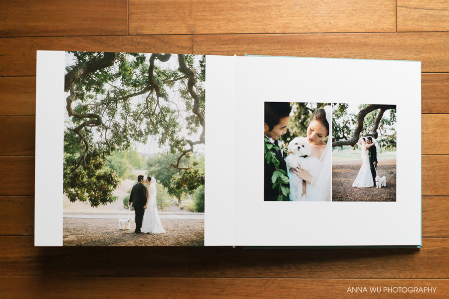 Holy moly, we have a stunner for you today! This album design features an elegant California golf club wedding photographed by Anna Wu Photography. We especially love the romantic portraits, the couple's adorable dog, and the beautiful green leis that celebrated the groom's Hawaiian background!