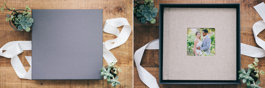 Sharon also took some photos of a recent album we designed for her. This beauty, a Leather Craftsmen album with Premium Japanese Book Cloth, is going to be her studio sample album going forward! Take a look: