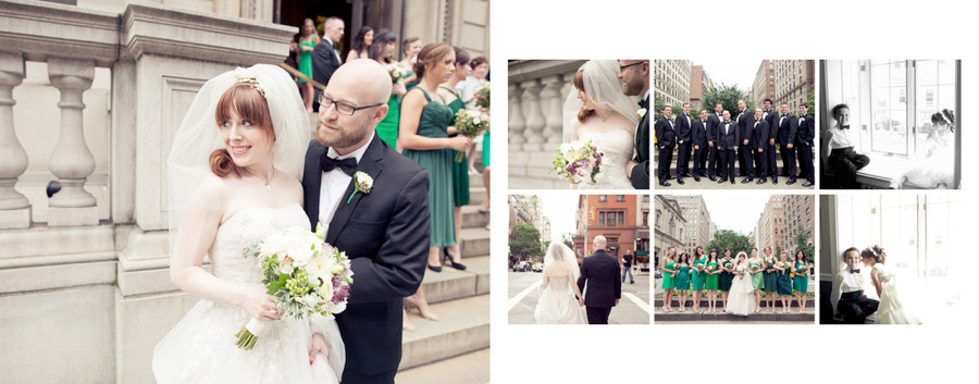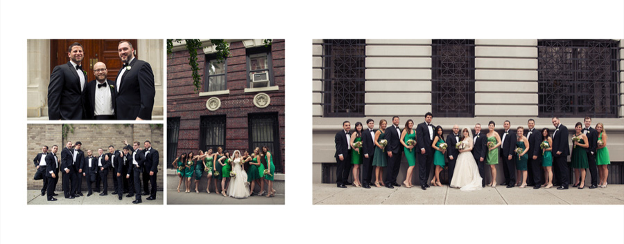 This favorite recent design comes from New York City photographer Isabelle Selby. This is our first time working with Isabelle and we already adore her photography! I love the wedding party's attire in this design. The men look dashing in their bow ties and the bridesmaids beautifully pull off the mismatched look in their variety of green dresses!
